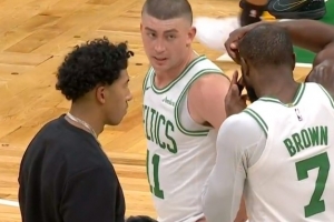 希望没事!巴雷特扣篮落地后脚踝不适 已返回更衣室